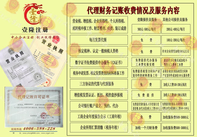 上海壹隆企業(yè)管理有限公司代理記賬服務(wù)內(nèi)容
